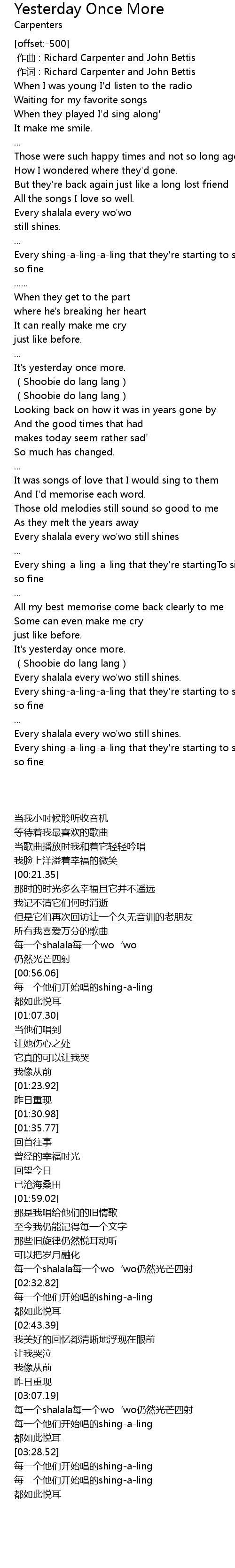 | [00:00.00] | zuo qu : Richard Carpenter and John Bettis |