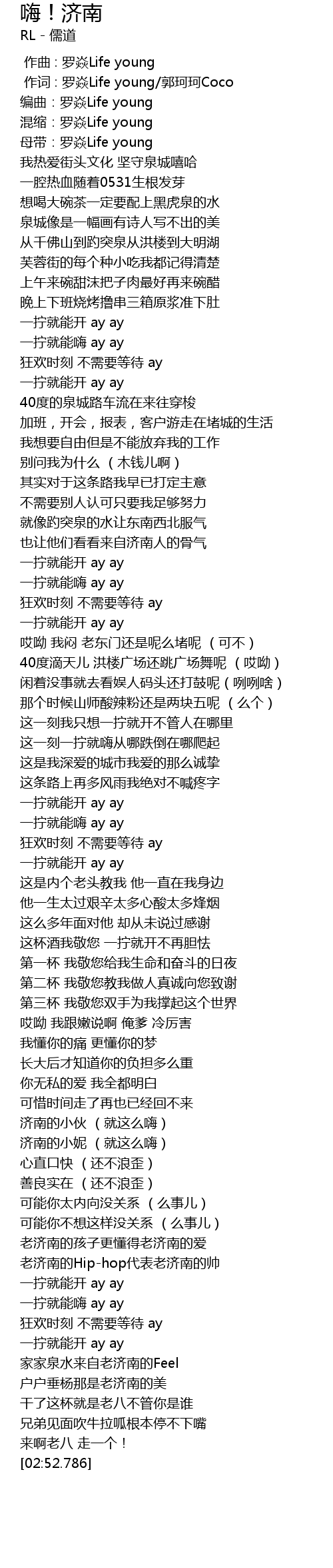 | [02:26.852] | 老济南的Hip-hop代表老济南的帅 |