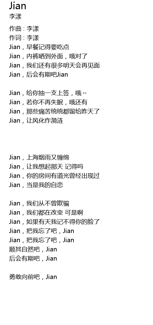 | Jian, bǎ wǒ wàng le ba, Jian | |