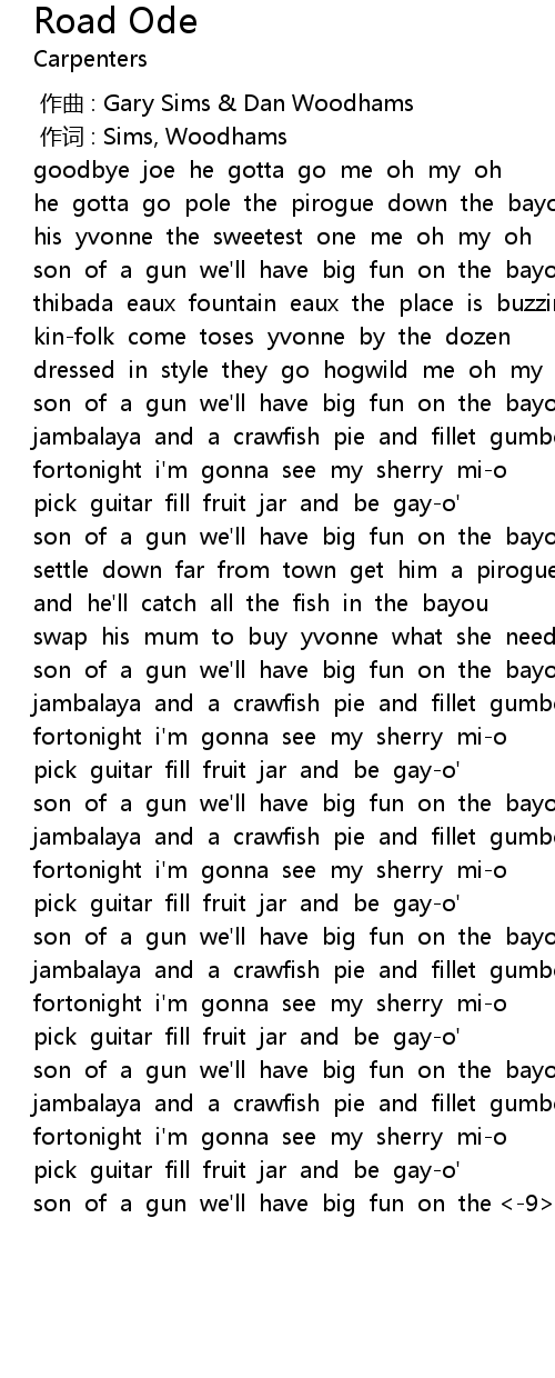 | [02:02.43] | pick guitar fill fruit jar and be gay-o' |