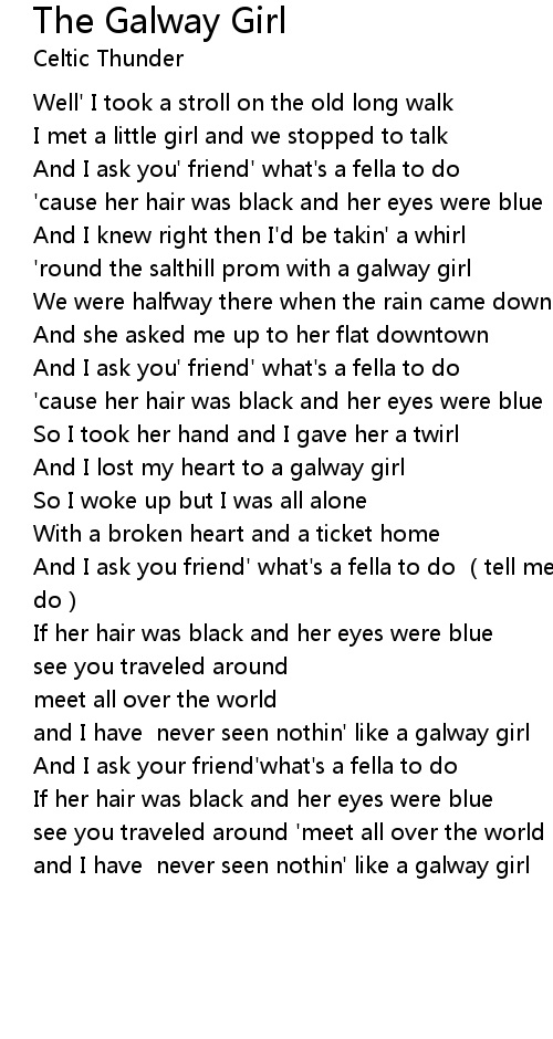 | [02:09.00] | and I have never seen nothin' like a galway girl |