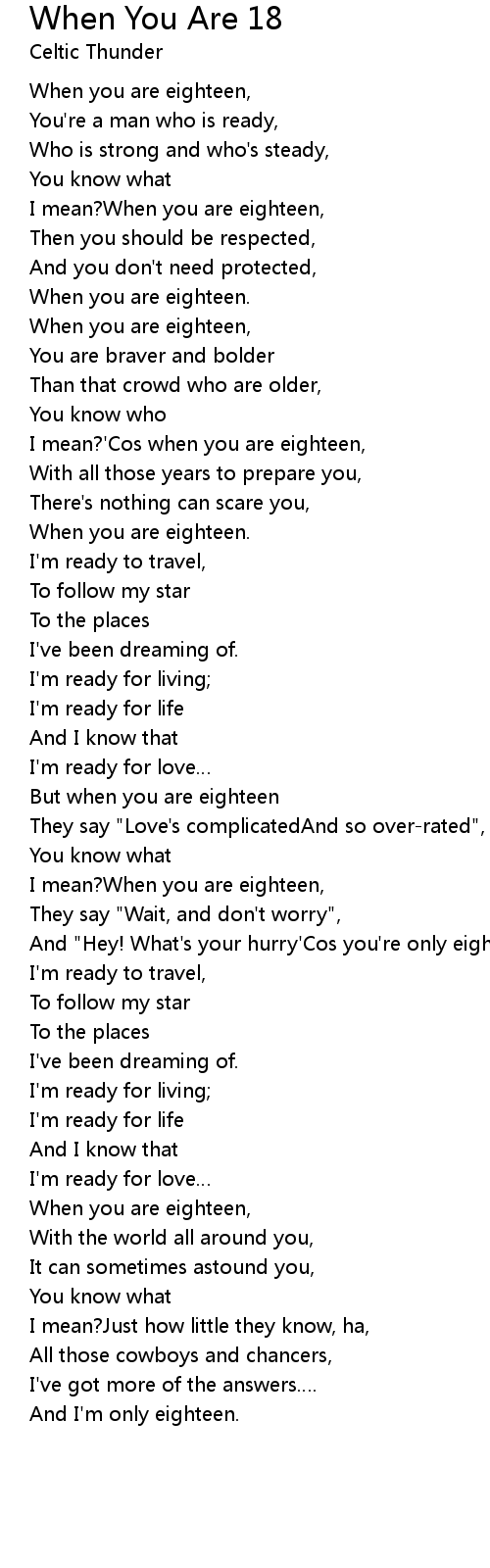| And " Hey! What' s your hurry' Cos you' re only eighteen". | |