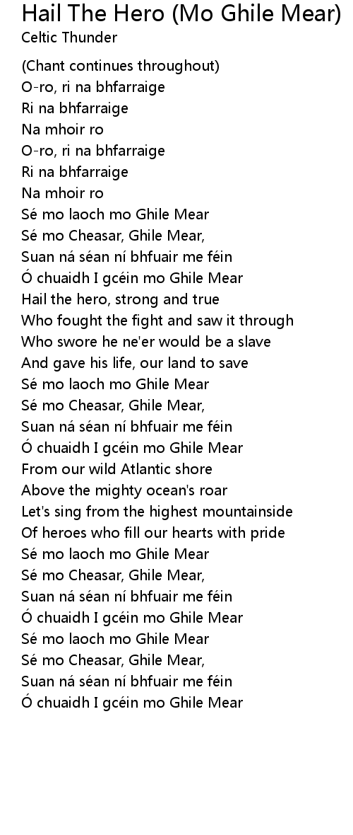 | Song | Hail The Hero (Mo Ghile Mear) |