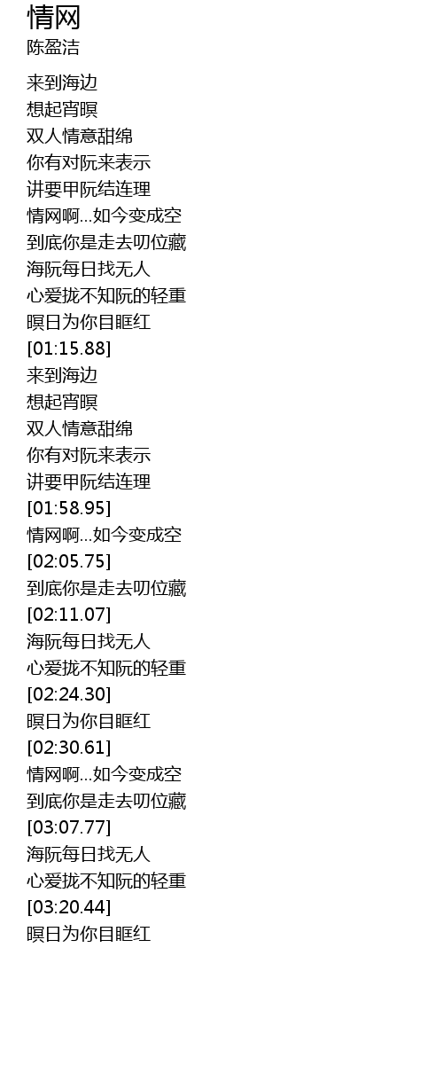 | [03:14.31] | 心爱拢不知阮的轻重 |