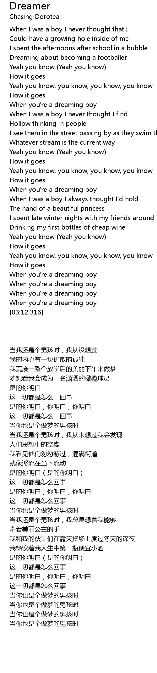 When you're a dreaming boy |