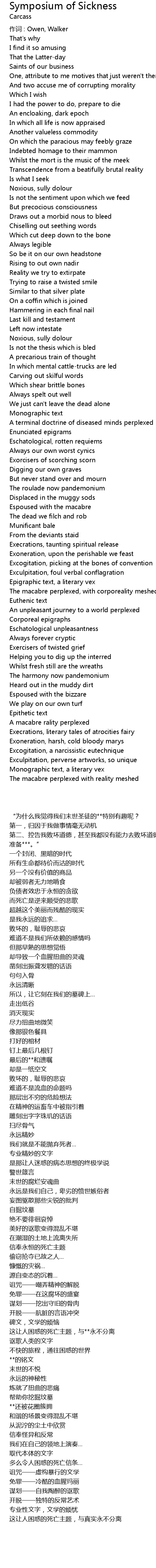 | Song | Symposium of Sickness |