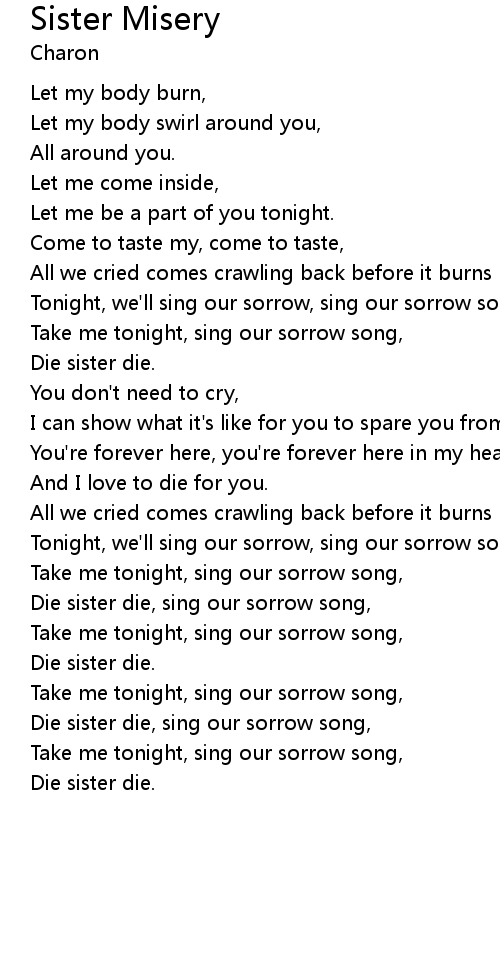 Tonight, we'll sing our sorrow, sing our sorrow song. |