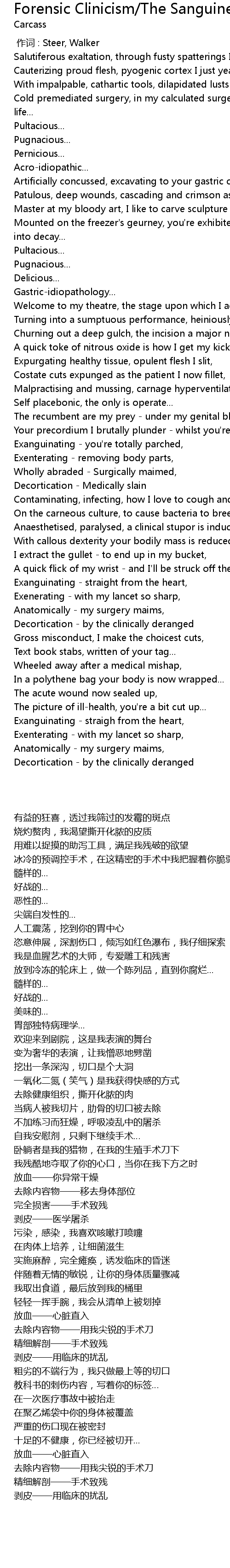 | [01:58.48] | Expurgating healthy tissue, opulent flesh I slit, |