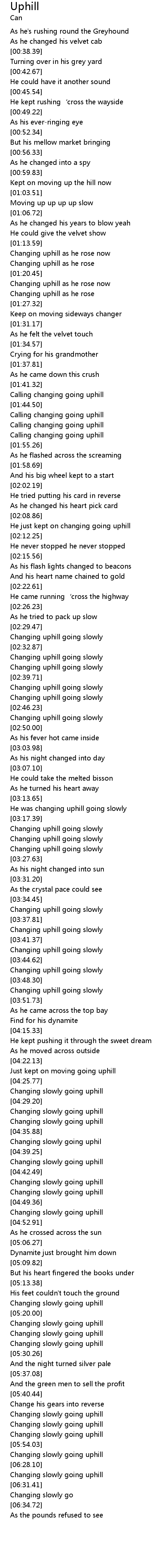 | [04:39.81] | Changing slowly going uphill |