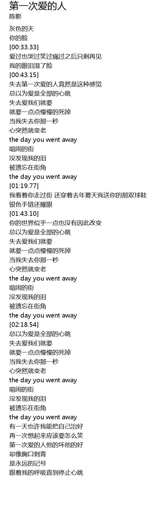| [00:43.66] | 失去第一次爱的人竟然是这种感觉 |