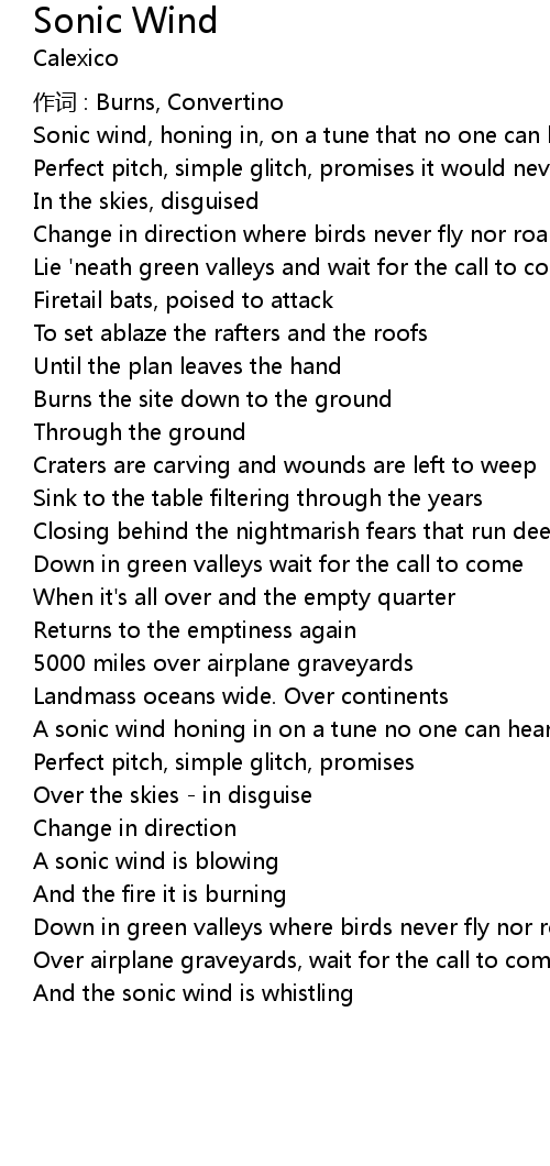 | And the sonic wind is whistling |