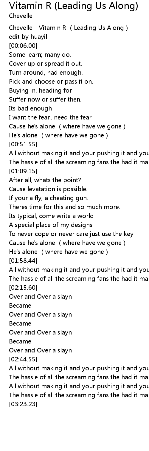 | [03:04.47] | All without making it and your pushing it and your leading us along |