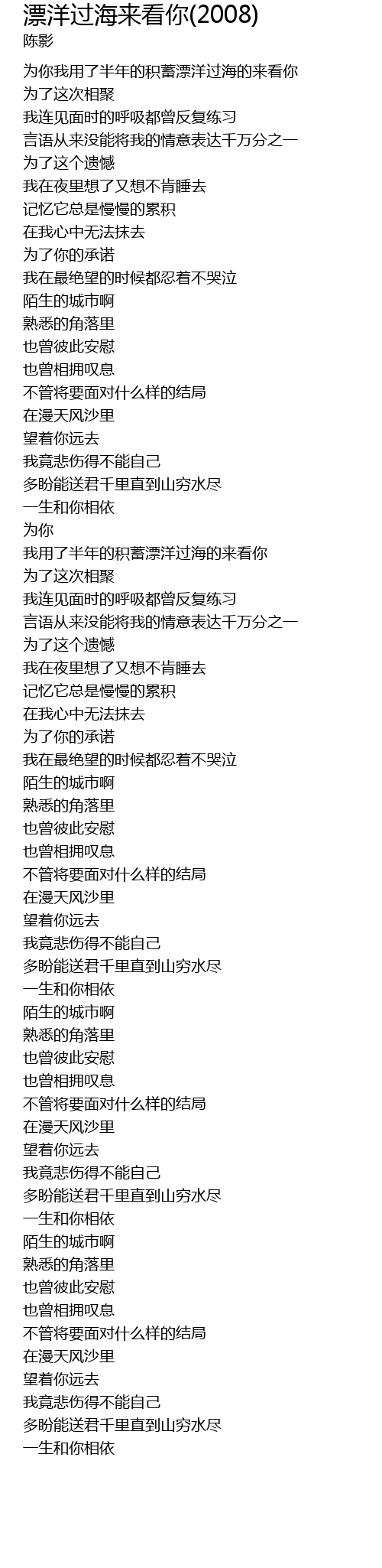 | [02:01.000] | 我用了半年的积蓄漂洋过海的来看你 |