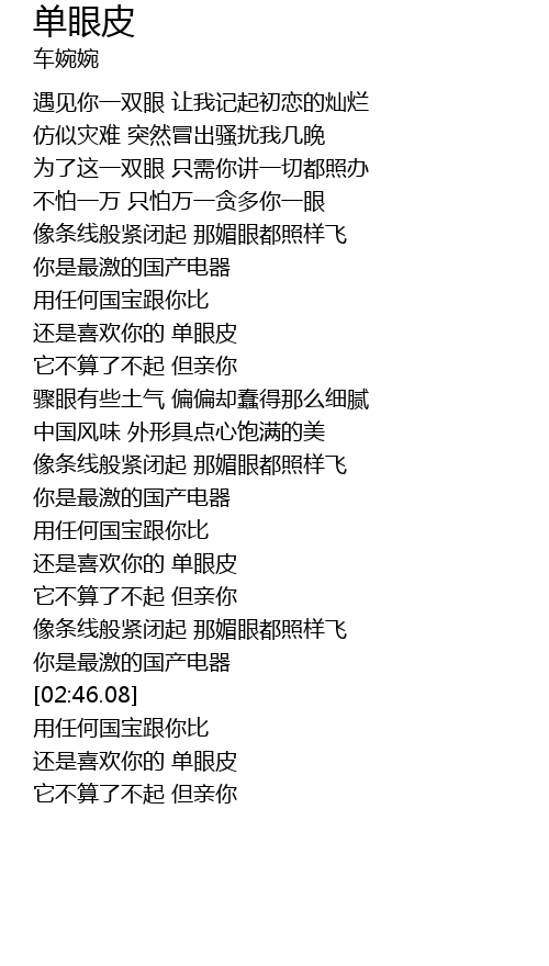 | [02:51.91] | 还是喜欢你的 单眼皮 |