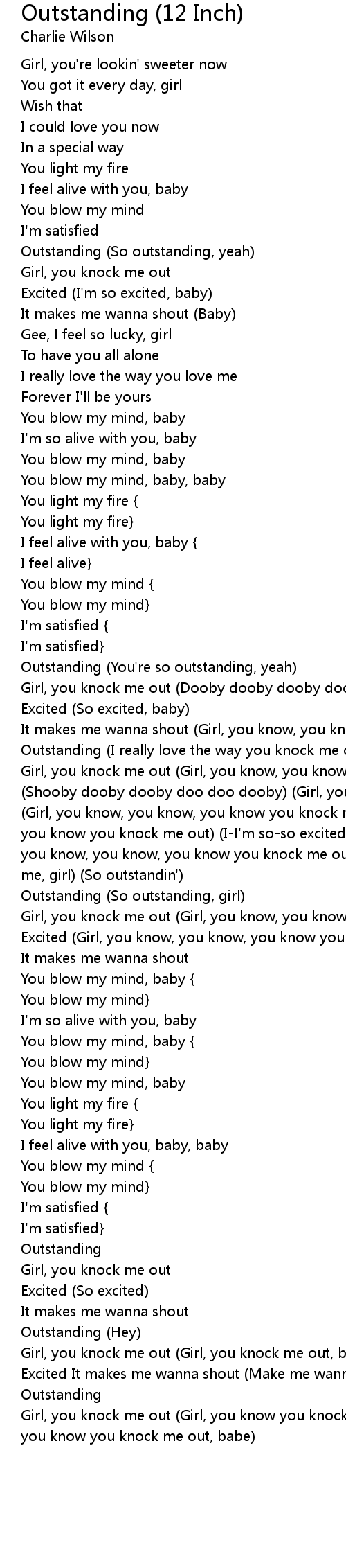 Girl, you knock me out (Girl, you know, you know, you know you knock me out) (Shooby dooby dooby doo doo dooby) (Girl, you knock me out) (So excited, baby) (Girl, you know, you know, you know you knock me out) (Girl, you know, you know, you know you knock me out) (I-I'm so-so excited) (So outstandin', baby) (Girl, you know, you know, you know you knock me out) (I really love the way you love me, girl) (So outstandin') |