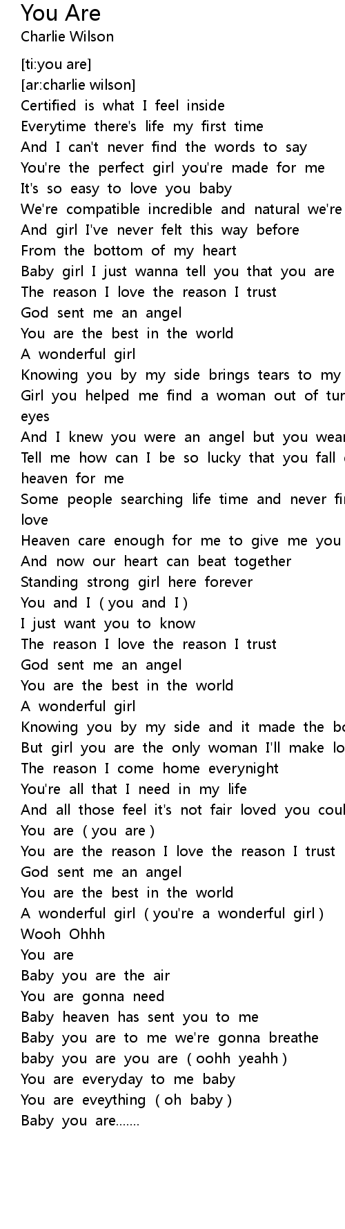 | [00:57.280] | Baby girl I just wanna tell you that you are |