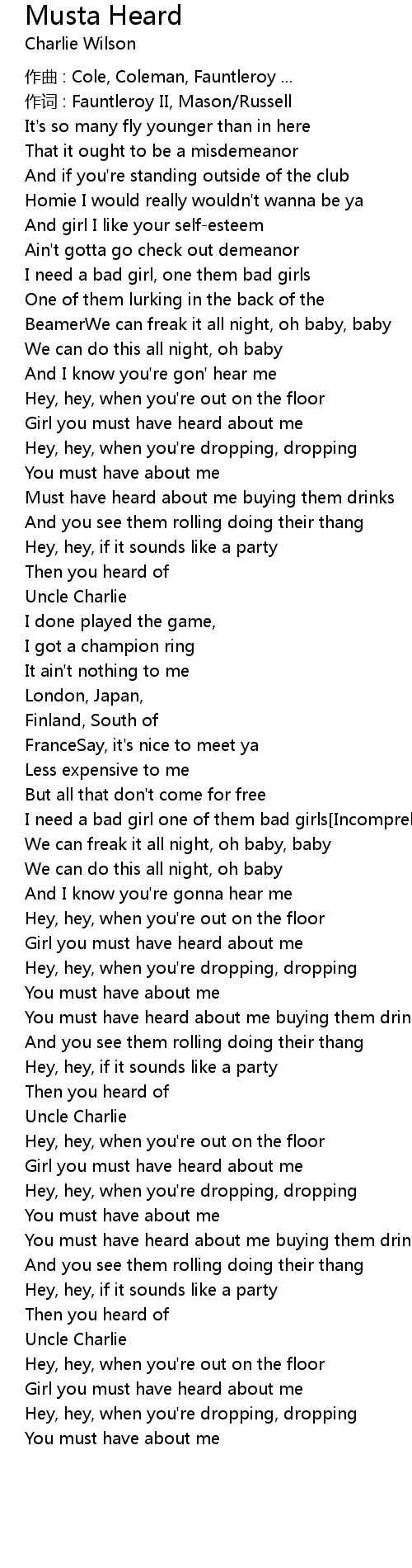 | Girl you must have heard about me | |
