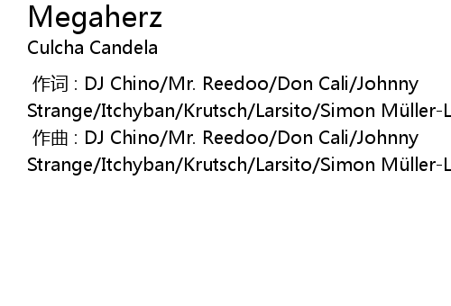 | [00:00.000] | 作词 : DJ Chino/Mr. Reedoo/Don Cali/Johnny Strange/Itchyban/Krutsch/Larsito/Simon Müller-Lerch |