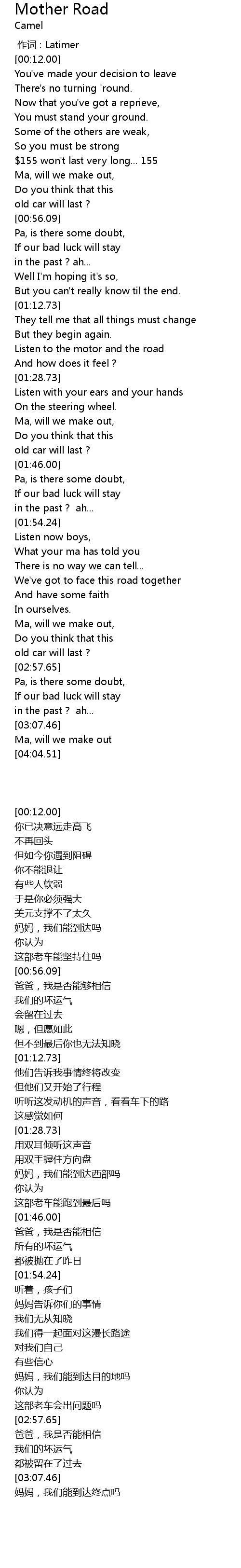 | [01:20.67] | Listen to the motor and the road |