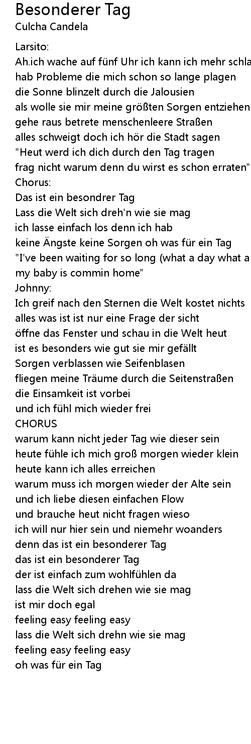 | keine ngste keine Sorgen oh was fü r ein Tag | |