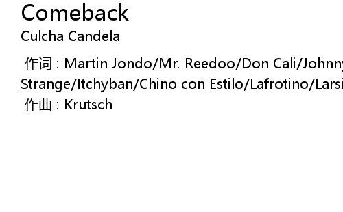 | [00:00.000] | 作词 : Martin Jondo/Mr. Reedoo/Don Cali/Johnny Strange/Itchyban/Chino con Estilo/Lafrotino/Larsito/Mark Schlumberger |