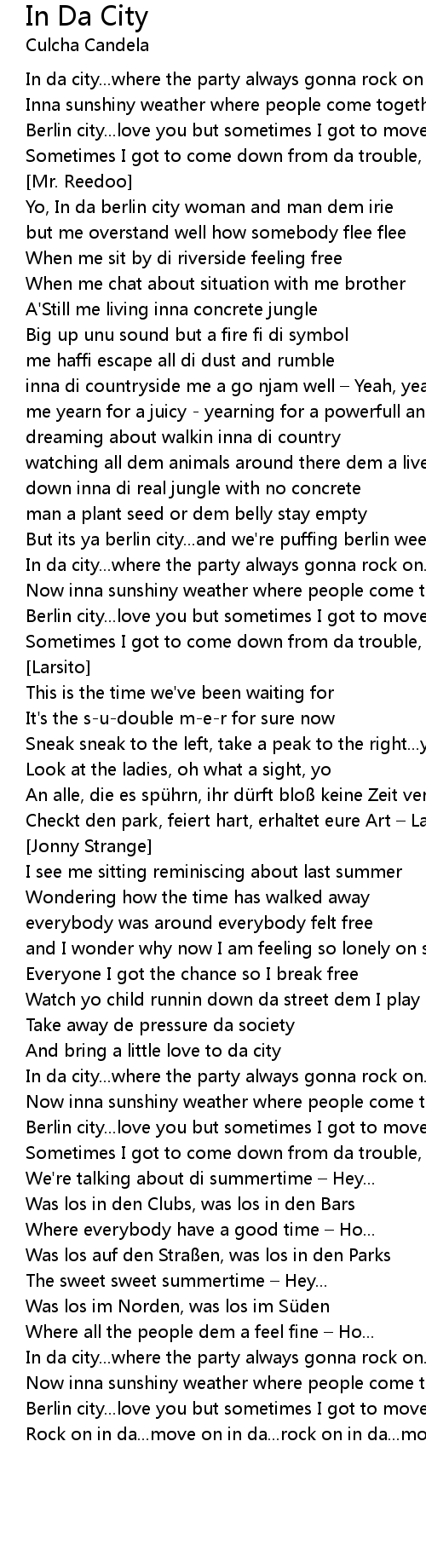| But its ya berlin city... and we' re puffing berlin weed | |