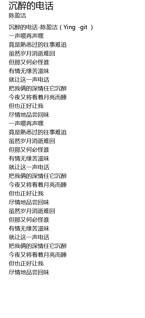 | [00:00.00] | 沉醉的电话-陈盈洁(Ying -git ) |