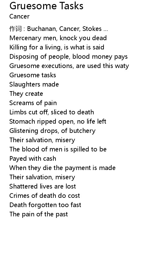 | 作词 : Buchanan, Cancer, Stokes ... | |