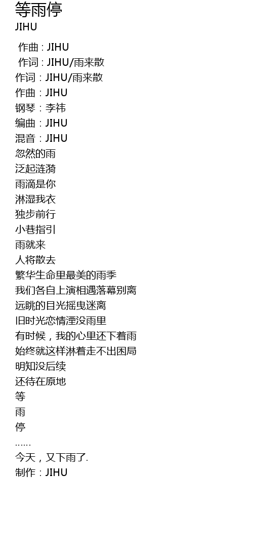 | [00:01.000] | 作词 : JIHU/雨来散 |