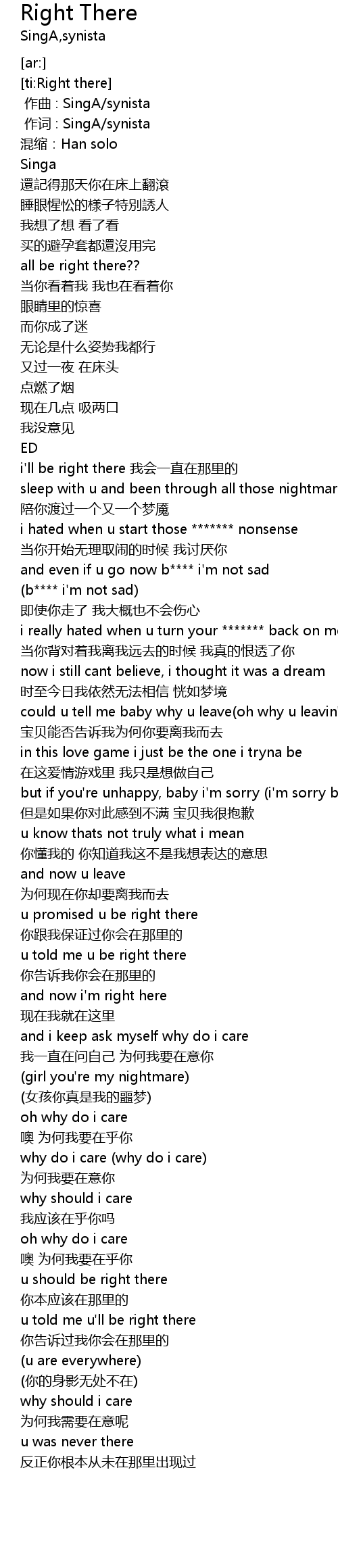 | [01:44.07] | i' ll be right there wǒ huì yī zhí zài nà li de |