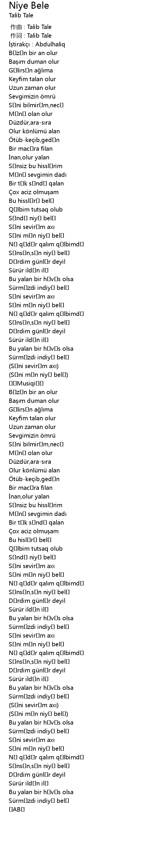(Səni mən niyə belə) |