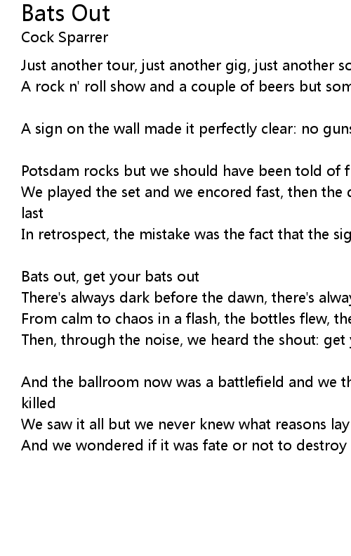 Then, through the noise, we heard the shout: get your bats out, get your bats out [Chorus] |