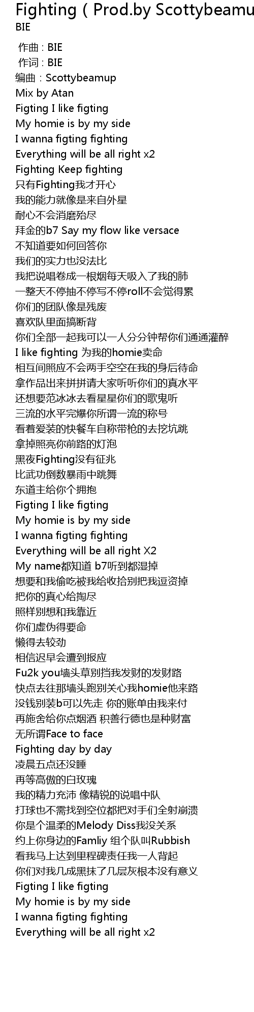 | [01:03:80] | I like fighting wèi wǒ de homie mài mìng |