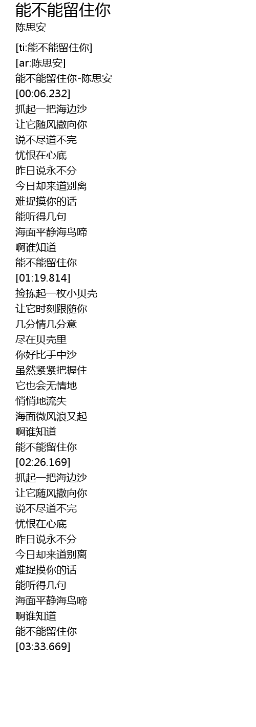 | [00:01.968] | néng bù néng liú zhù nǐ chén sī ān |