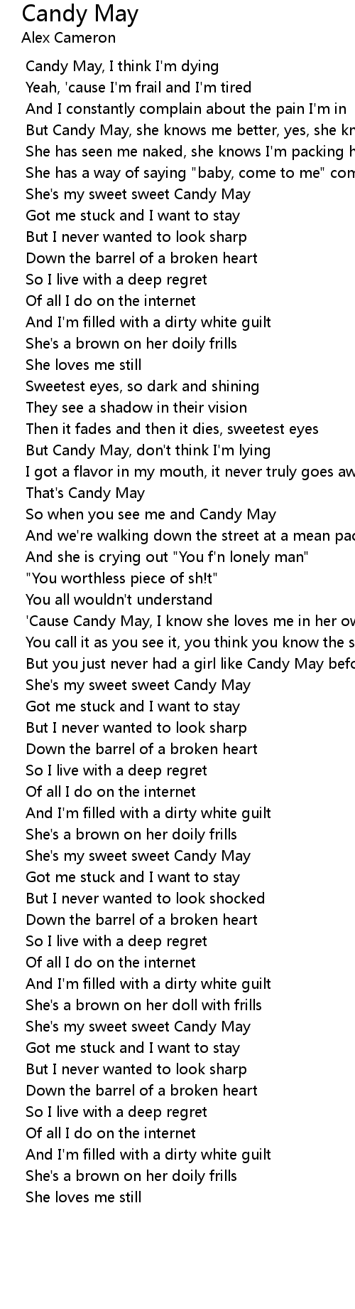 'Cause Candy May, I know she loves me in her own true way |