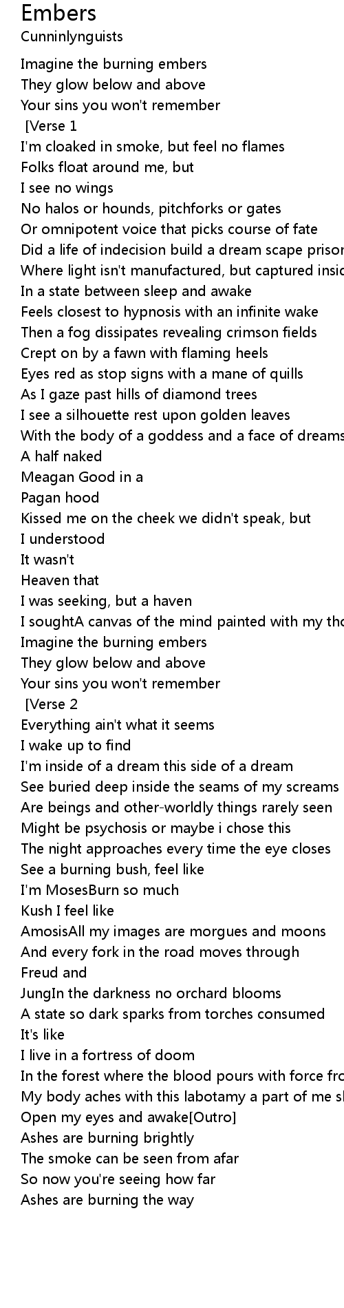 [Chorus]Imagine the burning embers |
