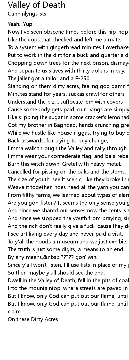 Dwell in the Valley of Death, fell in the pits of coal, |