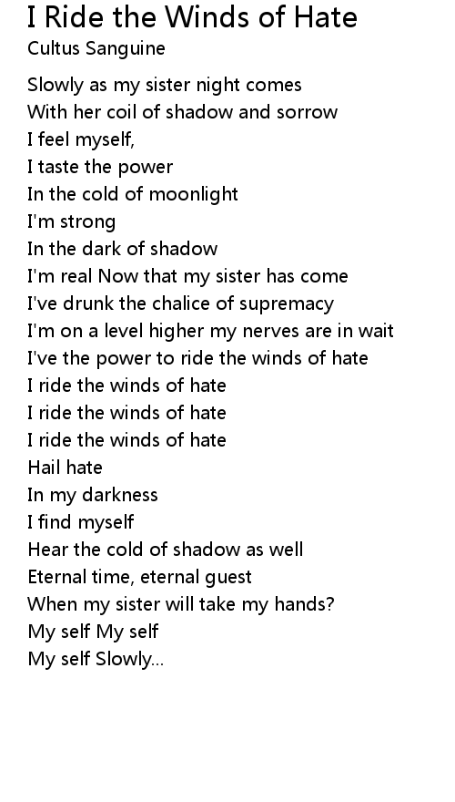 Song I Ride the Winds of Hate