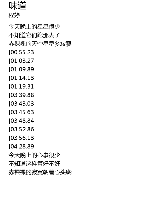 | [04:22.59][03:56.13][01:38.53] | hé shǒu zhǐ dàn dàn yān cǎo wèi dào |
