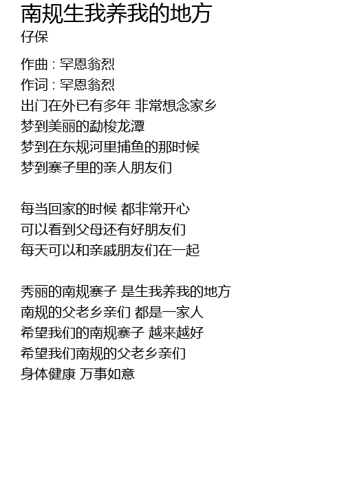 | xī wàng wǒ men nán guī de fù lǎo xiāng qīn men | |
