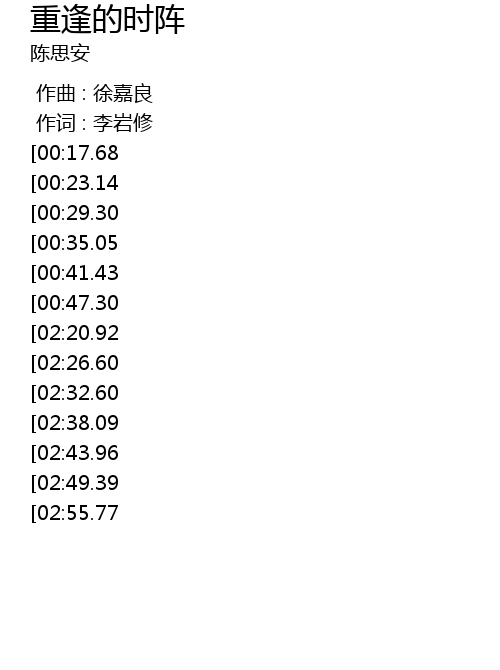 | [03:30.33][02:49.39][01:21.61] | 甲你重逢 作阵倒返 |