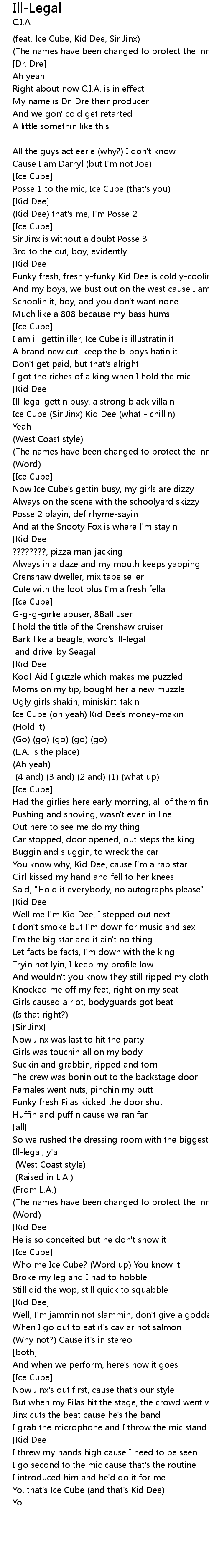Ice Cube (Sir Jinx) Kid Dee (what - chillin) |