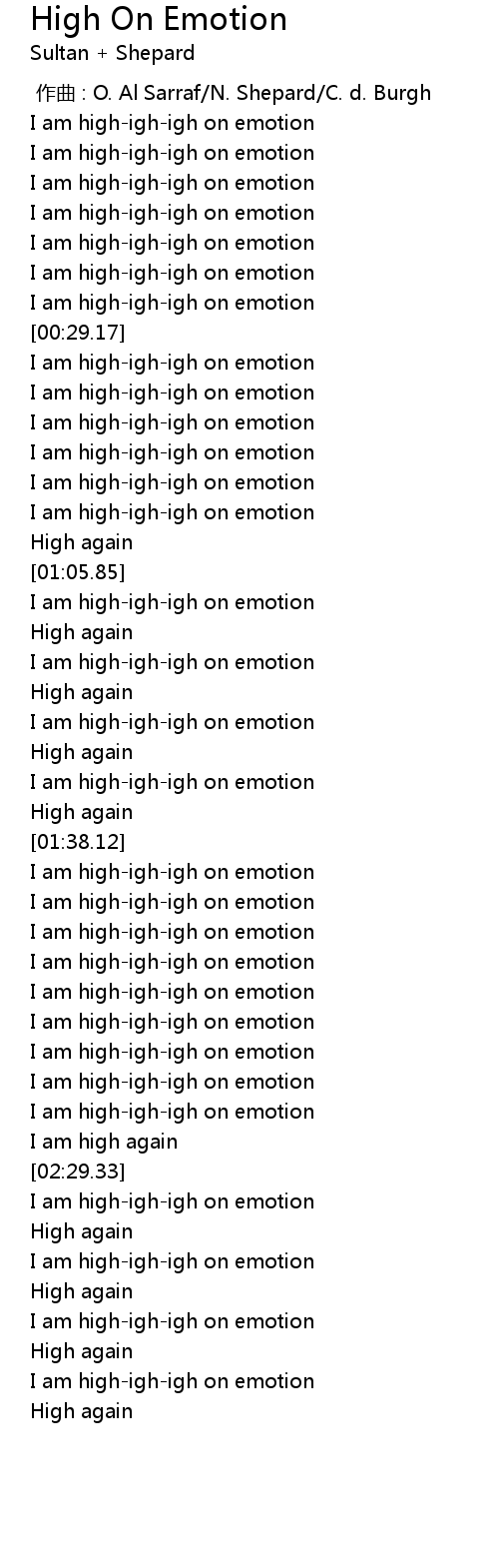 | [00:00.000] | 作曲 : O. Al Sarraf/N. Shepard/C. d. Burgh |