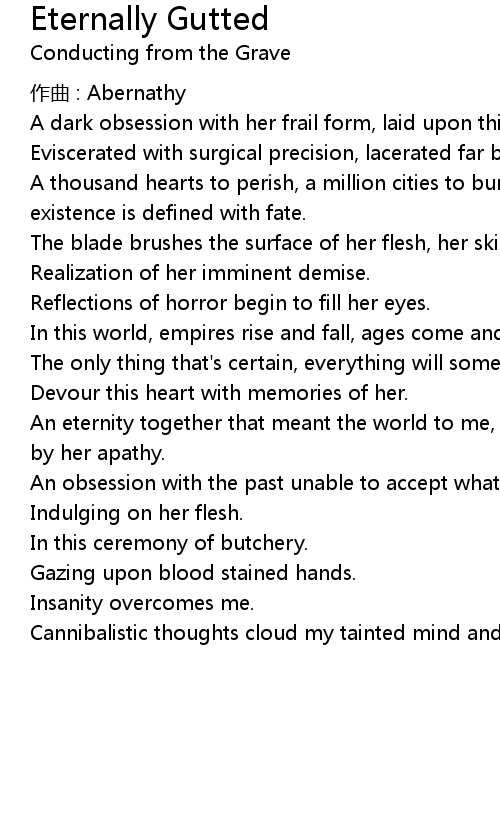 | Cannibalistic thoughts cloud my tainted mind and I begin to |