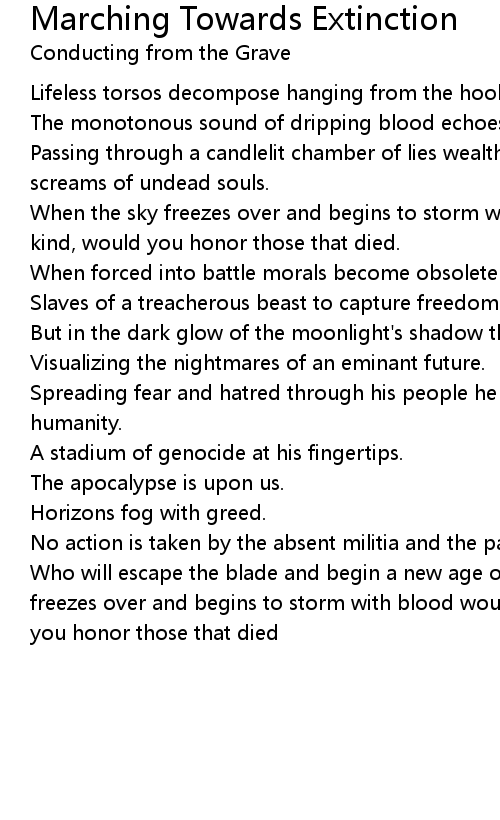 Who will escape the blade and begin a new age of revolution? When the sky freezes over and begins to storm with blood would you kill your own kind, would you honor those that died |