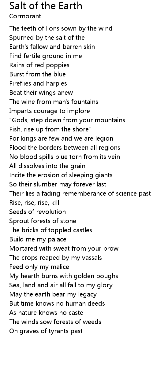 | Spurned by the salt of the | |