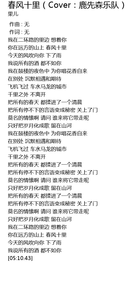 | [04:47.39] | 你在远方的山上 春风十里 |