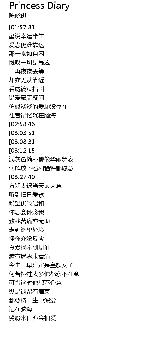 | [00:16.00][01:57.81][04:04.96] | chen xiao qi Princess Diary yue |