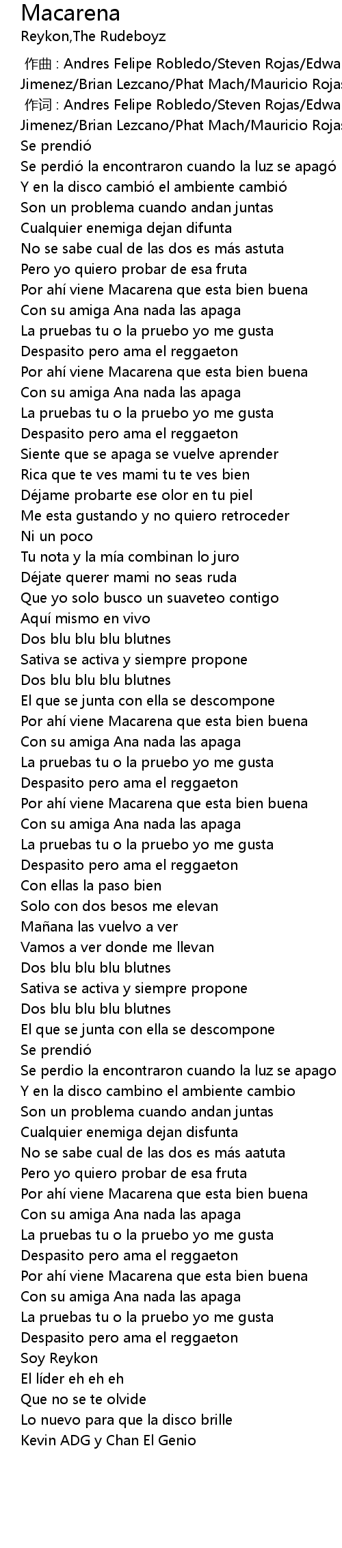 | [02:21.09] | Por ahí viene Macarena que esta bien buena |