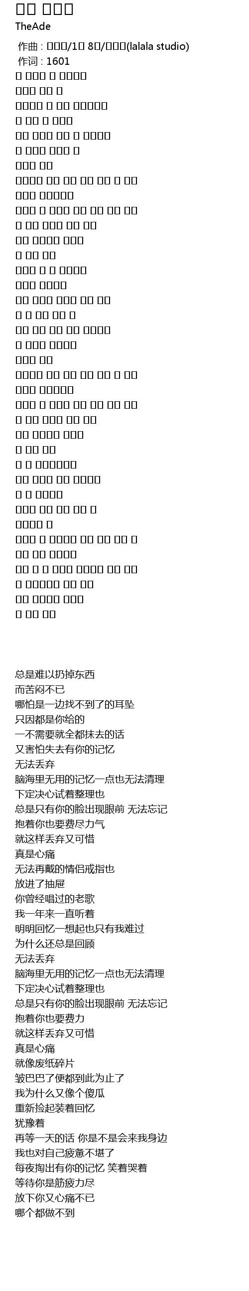 | [00:45.410] | 머릿속에 쓰지 않는 기억 하나 못 치워 |